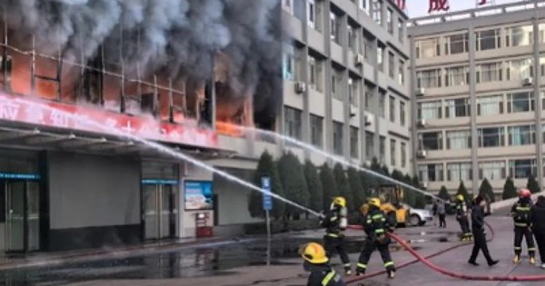 Ngọn lửa bùng lên rồi nhanh chóng bao trùm cả tòa nhà ở Trung Quốc trong đêm, tạo nên cảnh tượng hỗn loạn, kinh hoàng.