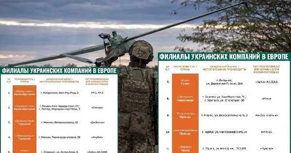 Nga đã công bố danh sách tên, địa chỉ các công ty quốc phòng ở châu Âu đang sản xuất máy bay không người lái cho Ukraine tấn công lãnh thổ Nga.