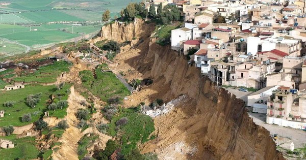 Một đợt lở đất lớn kéo dài hơn 4 km đã biến thị trấn Niscemi ở miền nam Sicily (Ý) thành khu vực nguy hiểm, khiến các ngôi nhà và xe cộ gần như treo lơ lửng trên bờ vực sau mưa lớn do Bão Harry gây ra. Hơn 1.500 người đã được sơ tán.