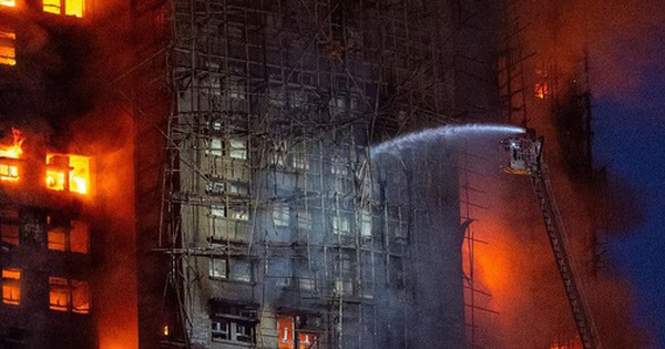 Sức nóng khủng khiếp từ đám cháy đã khiến giàn giáo tre bao quanh các toà nhà bùng lên dữ dội, tạo nên cảnh tượng kinh hoàng suốt nhiều giờ liền.